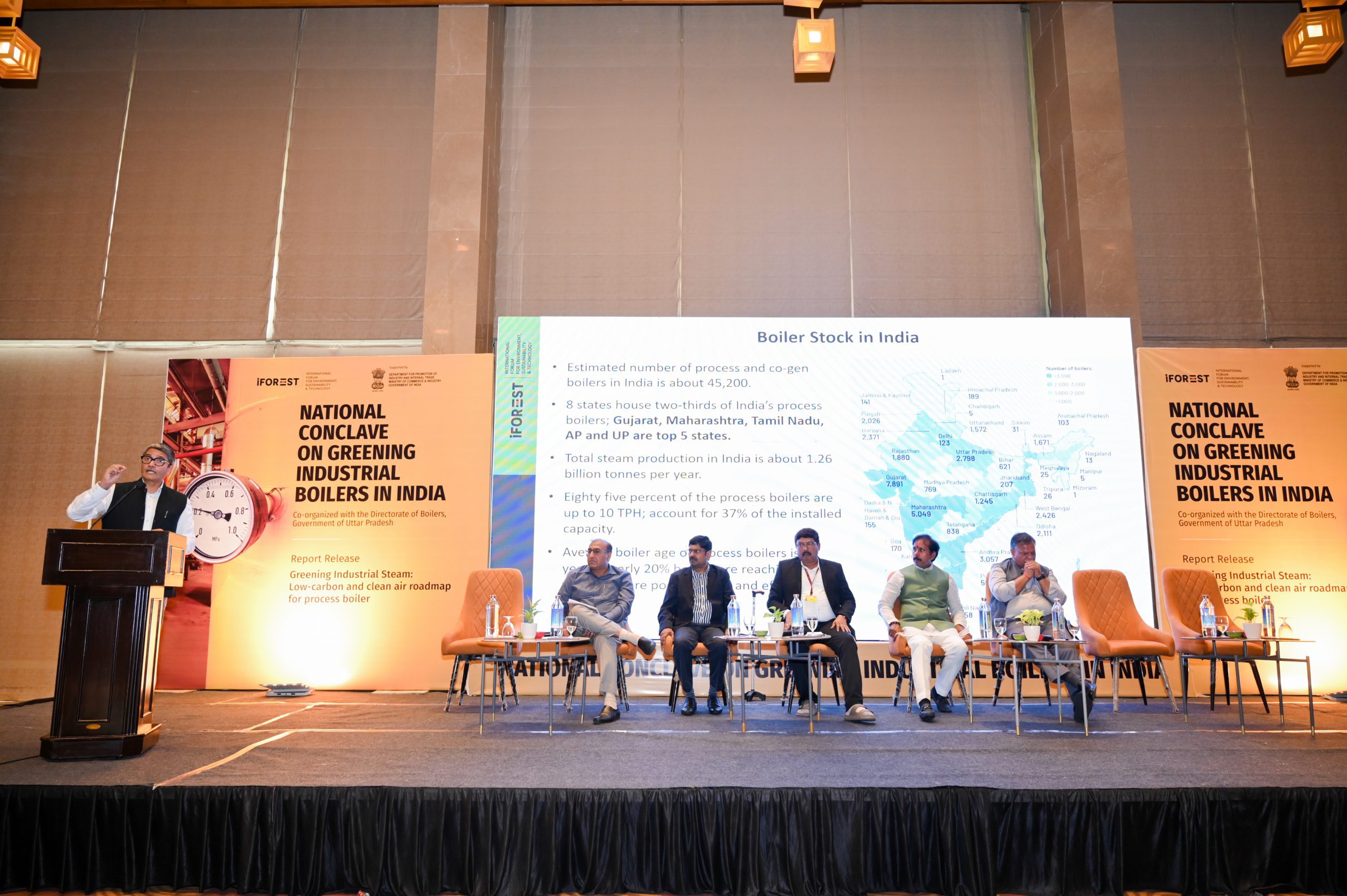 Undertaking a first-of-its-kind comprehensive study on process boilers in India, iFOREST hosted the ‘National Conclave on Greening Industrial Boilers in India’ in Lucknow. Two reports were released at the conclave – a national report ‘Greening Industrial Steam: Low-carbon and Clean Air Roadmap for Process Boiler’ and a state specific report ‘Greening Industrial Process Boiler: Low carbon and clean air pathways for Uttar Pradesh’.