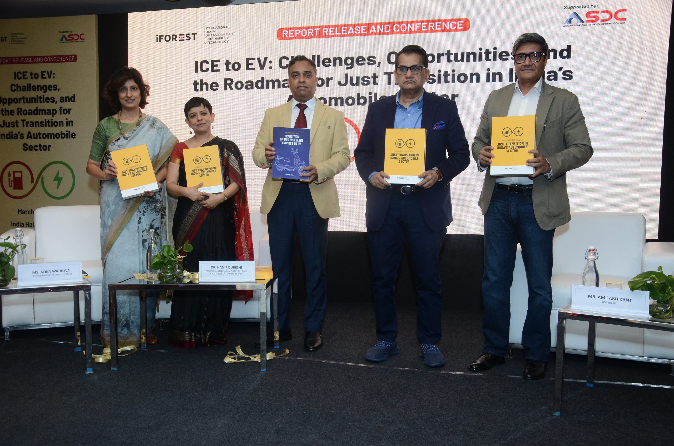At the event, iFOREST released the country’s first comprehensive study on the impact of the ICE to EV transition in the automobile sector. The report “ICE to EV: Challenges, Opportunities and the Roadmap for Just Transition in India’s Automobile Sector” deep-dives into the impact of the transition on businesses, workers and the environment and provides recommendations for a robust policy and institutional framework to support green growth and green jobs. The report is complemented by six separate studies on 2W,3W,4W – Impact Assessment Reports, Enterprise Impact Assessment Report, Automobile Cluster Impact Assessment Report, and Workforce Impact Assessment Report.